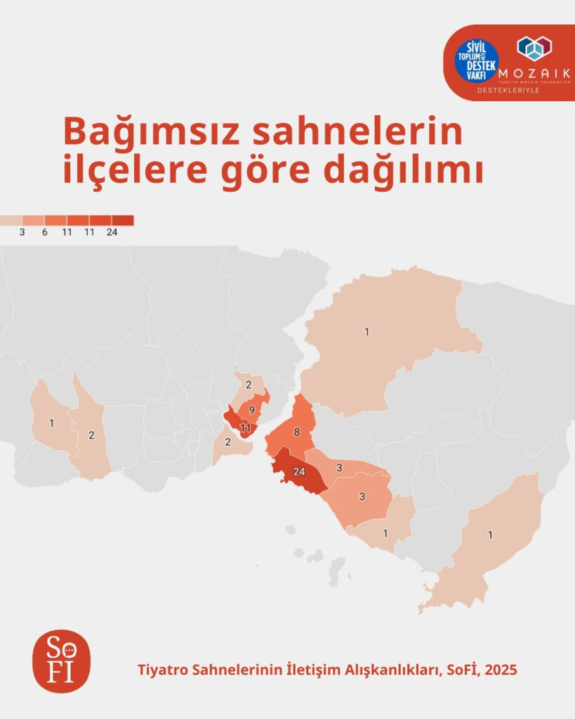 - Bağımsız sahnelerin %77’si Kadıköy, Beyoğlu, Şişli ve Üsküdar’da yer alıyor.